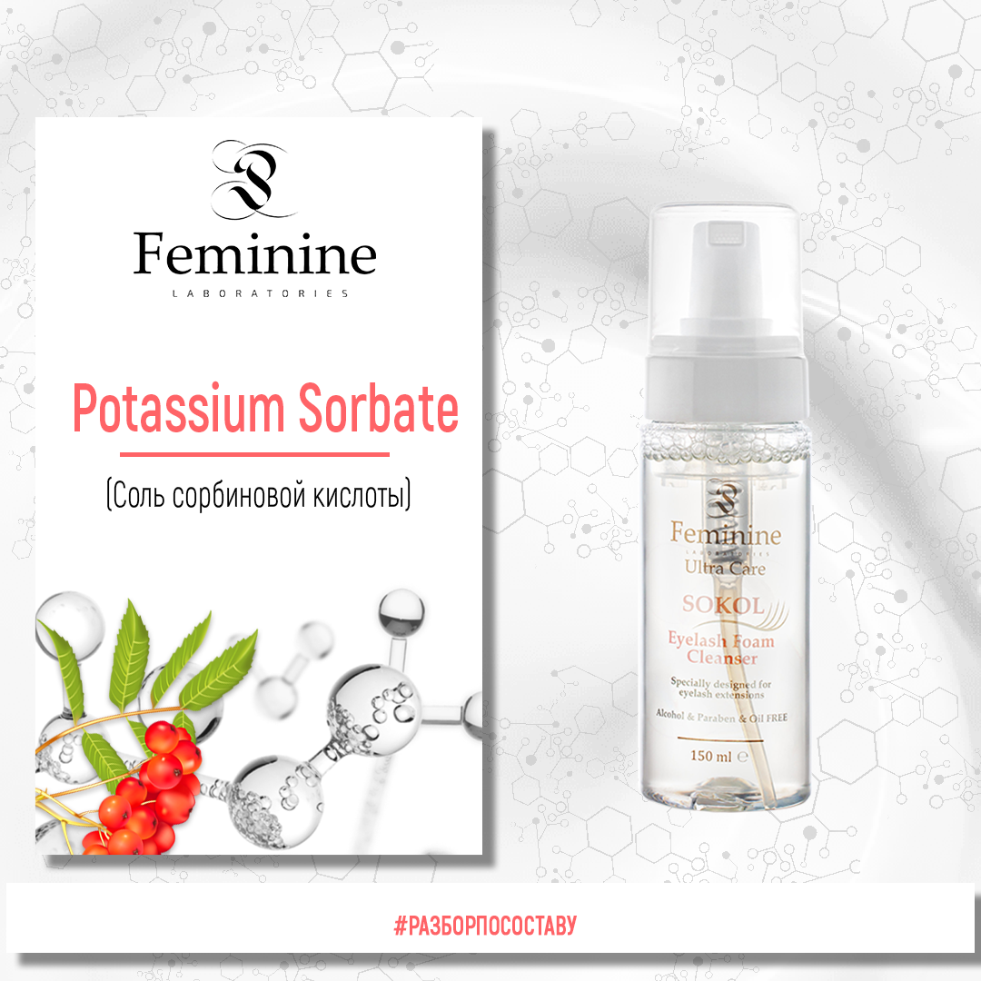 Сорбат калия - это натуральный ингредиент, который содержится в ягодах рябины Sorbus aucuparia.