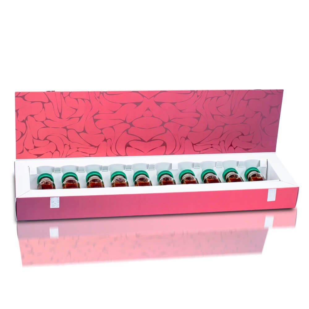 Домашнее: Нанесите содержимое ампулы на проблемные участки, внедрите препарат с помощью массажных движений. Используйте ампулы 1 раз в 3 дня, курсом в течение 3 месяцев.