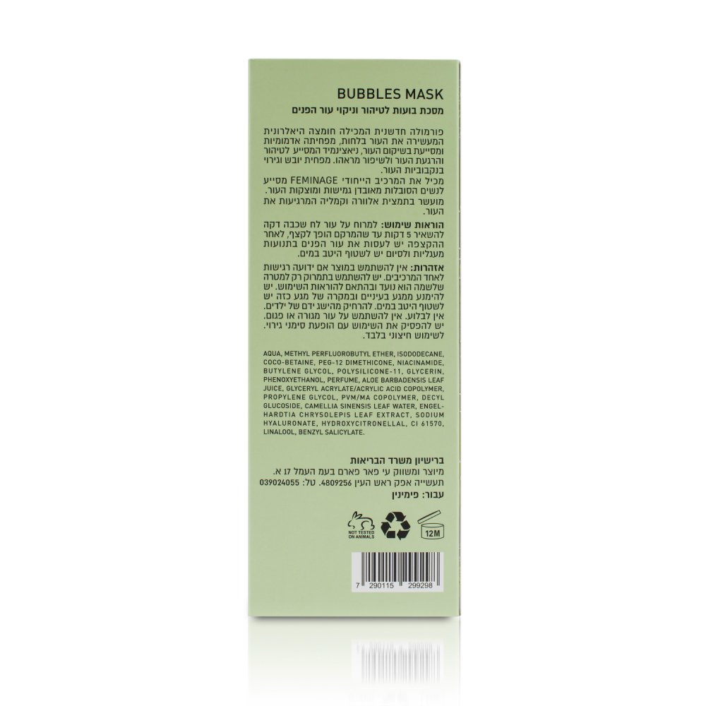 Ниацинамид в составе маски активно работает на очищение и успокоение кожи, улучшая её внешний вид, уменьшая сухость и раздражение пор. Специальный компонент FEMINAGE помогает женщинам, страдающим от потери упругости и плотности кожи. Маска также обогащена экстрактами алоэ и камелии, которые успокаивают кожу.