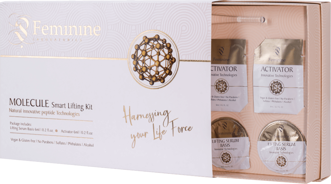 Новаторский набор Molecule Kit от Feminine! Этот эксклюзивный комплект, состоящий из двух мощных компонентов, обещает революционный уход за кожей с непревзойденным антивозрастным и подтягивающим действием. Эффект ботокса гарантирован - без уколов и инъекций! Совершенно уникальная формула маски, сочетающая в себе активные ингредиенты и инновационный пептид NaturePep Feminage, дарит вашей коже длительный эффект до 18 часов невероятной свежести и молодости